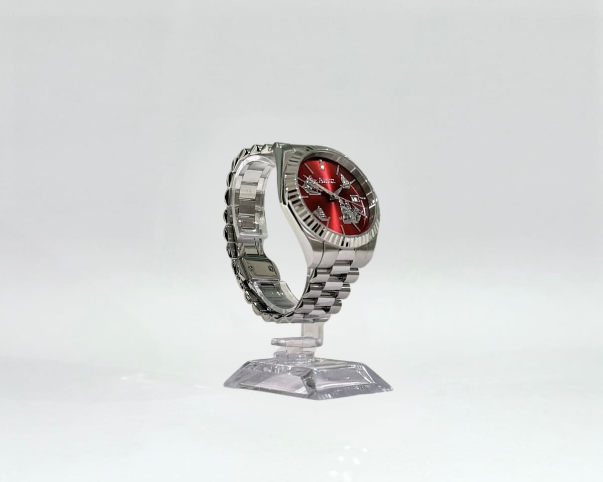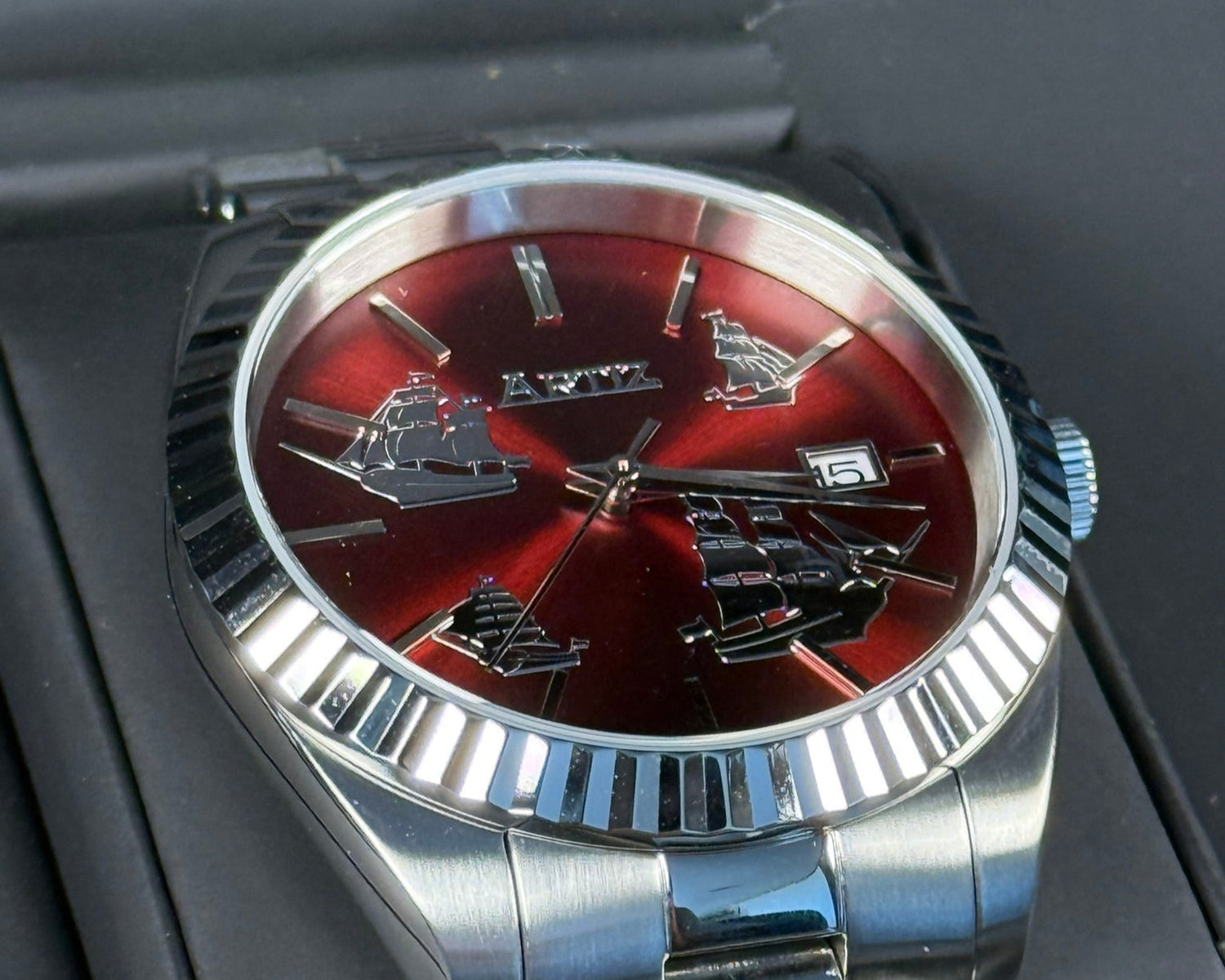 The AMSTERDAM watch is a tribute to the city where ARTIZ watches originated. The unique design with the silver ships on the crimson dial is inspired by the old classic Amsterdam shipping. It is not just a watch but it symbolizes the differences between people, cultures and objects. Something that is abundantly present in a world city like Amsterdam. Every time you look at the watch you are reminded that everything and everyone is different and that you should not compare yourself to others.
